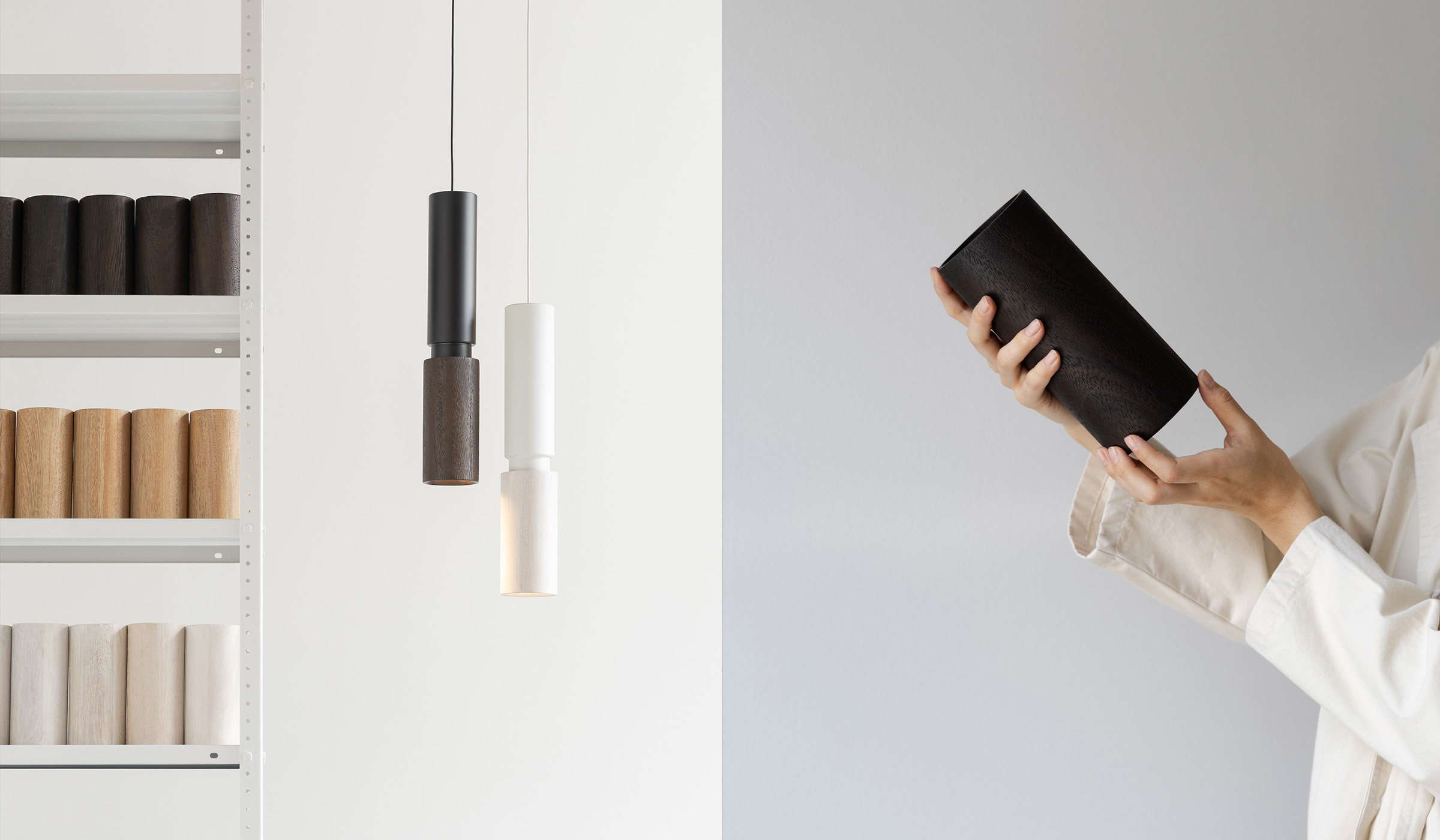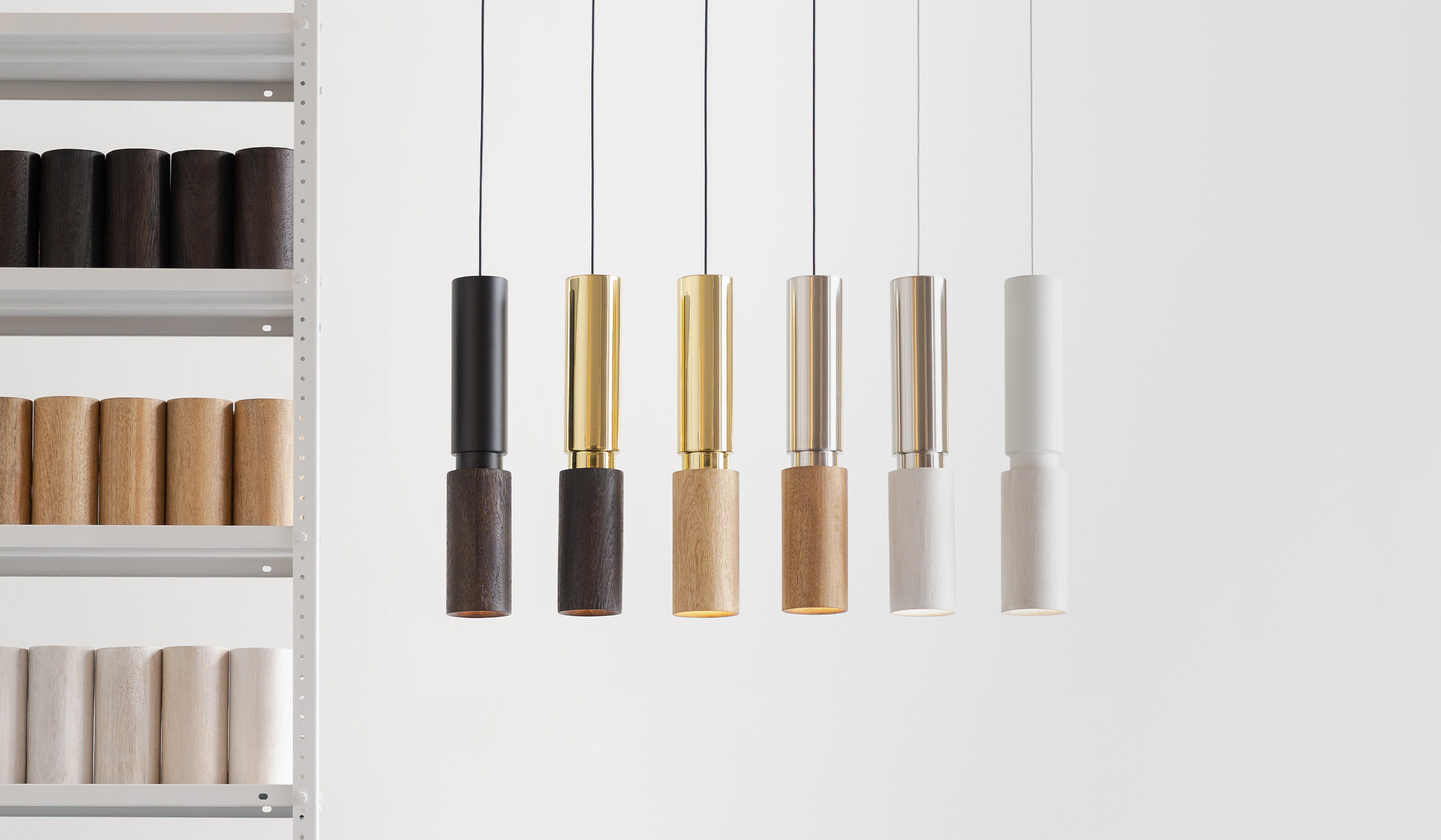 Materiales metal negro y madera de Saman. Diseñada por Studio David pompa. 45cm de largo x 9cm de diámetro. Peso 1.5kg.