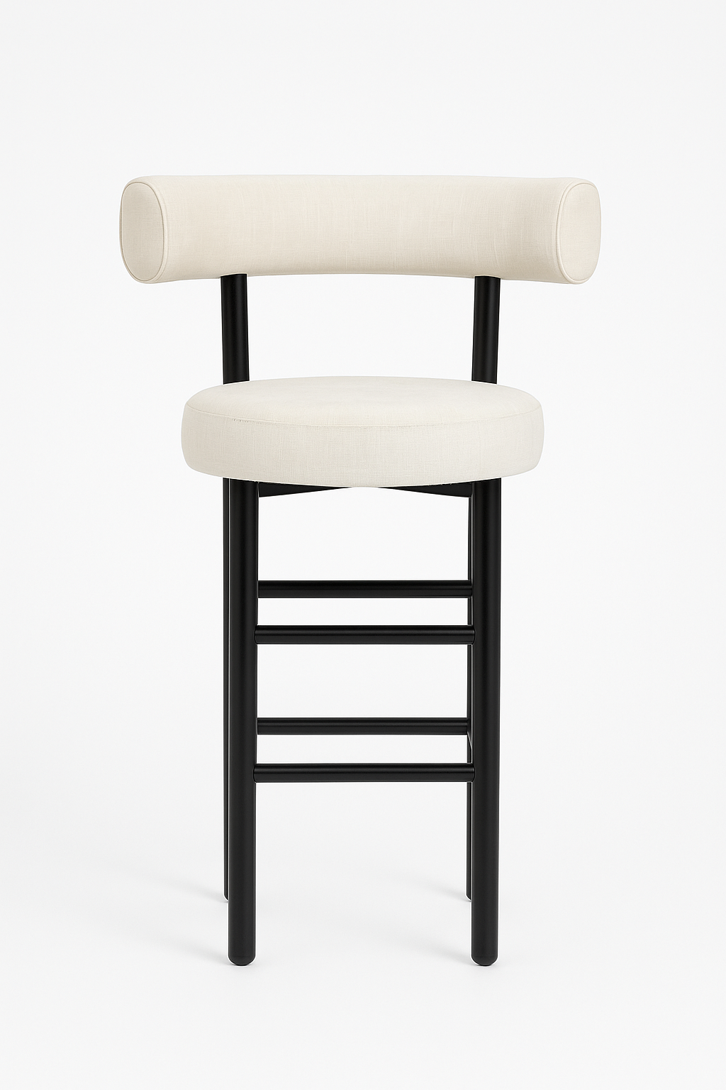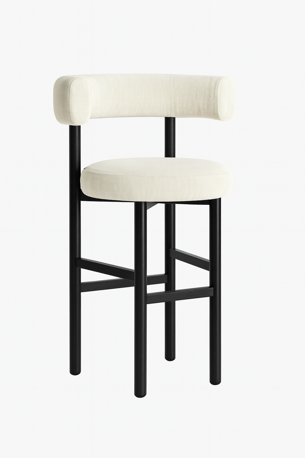 Banco Julieta elaborado en madera y textil, con el tamaño perfecto para tu mostrador o bar. Los cojines de apoyo del respaldo y del asiento están tapizados en la tela de alta calidad de su elección, garantizando comodidad en ambos puntos indispensables para un uso prolongado. Nota: Las dimensiones pueden variar ±1 a 2 cm por procesos de fabricación y adaptación al diseño.
