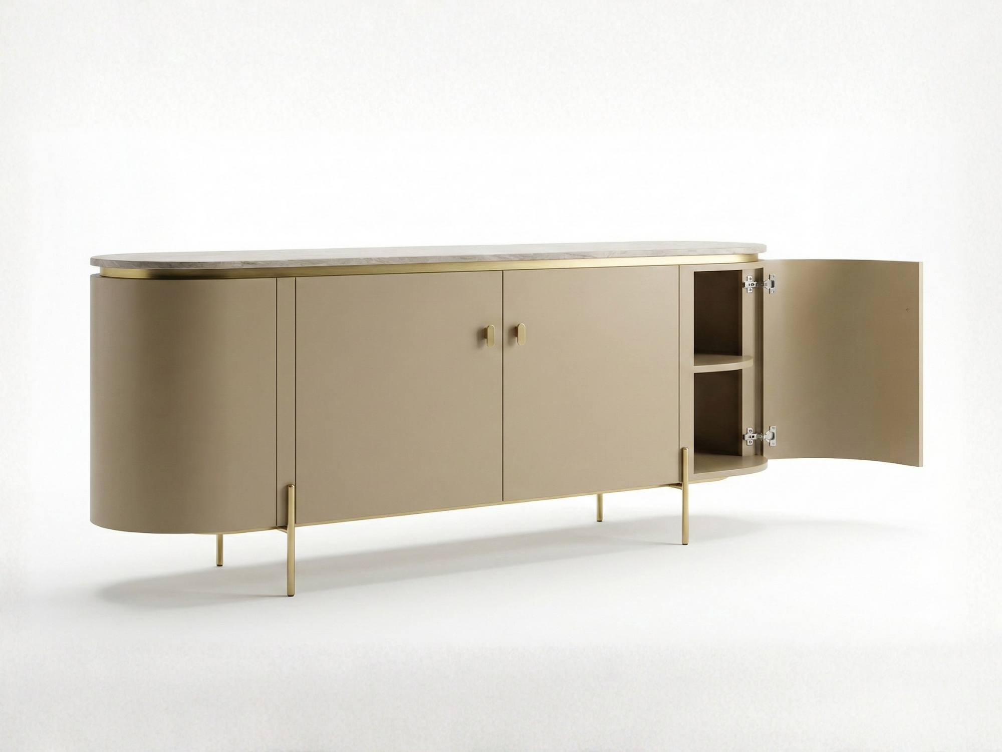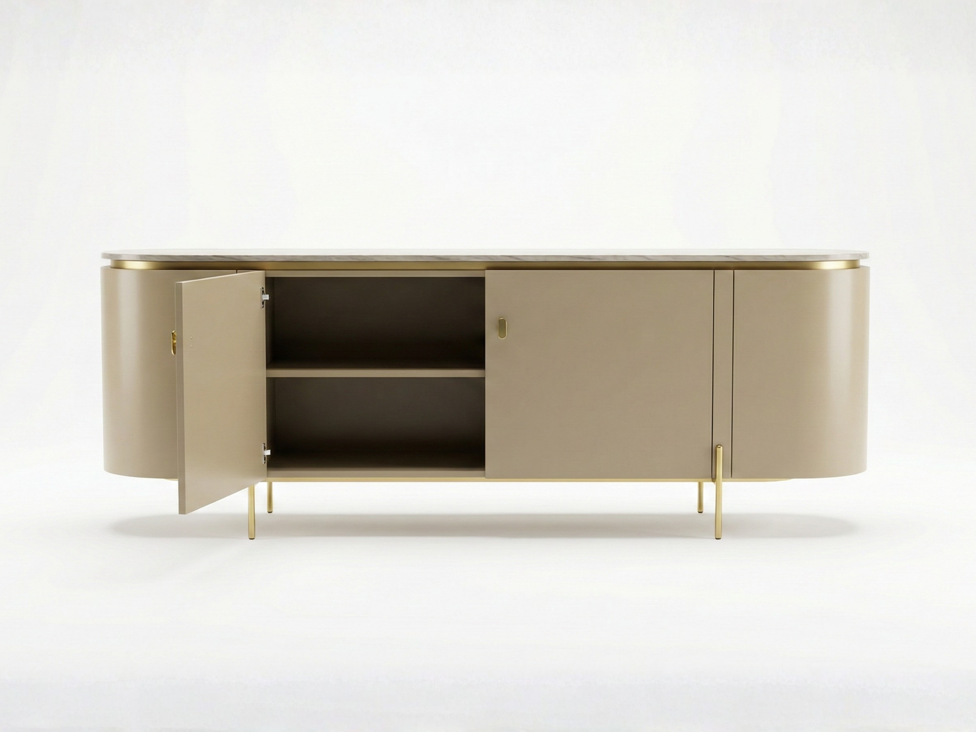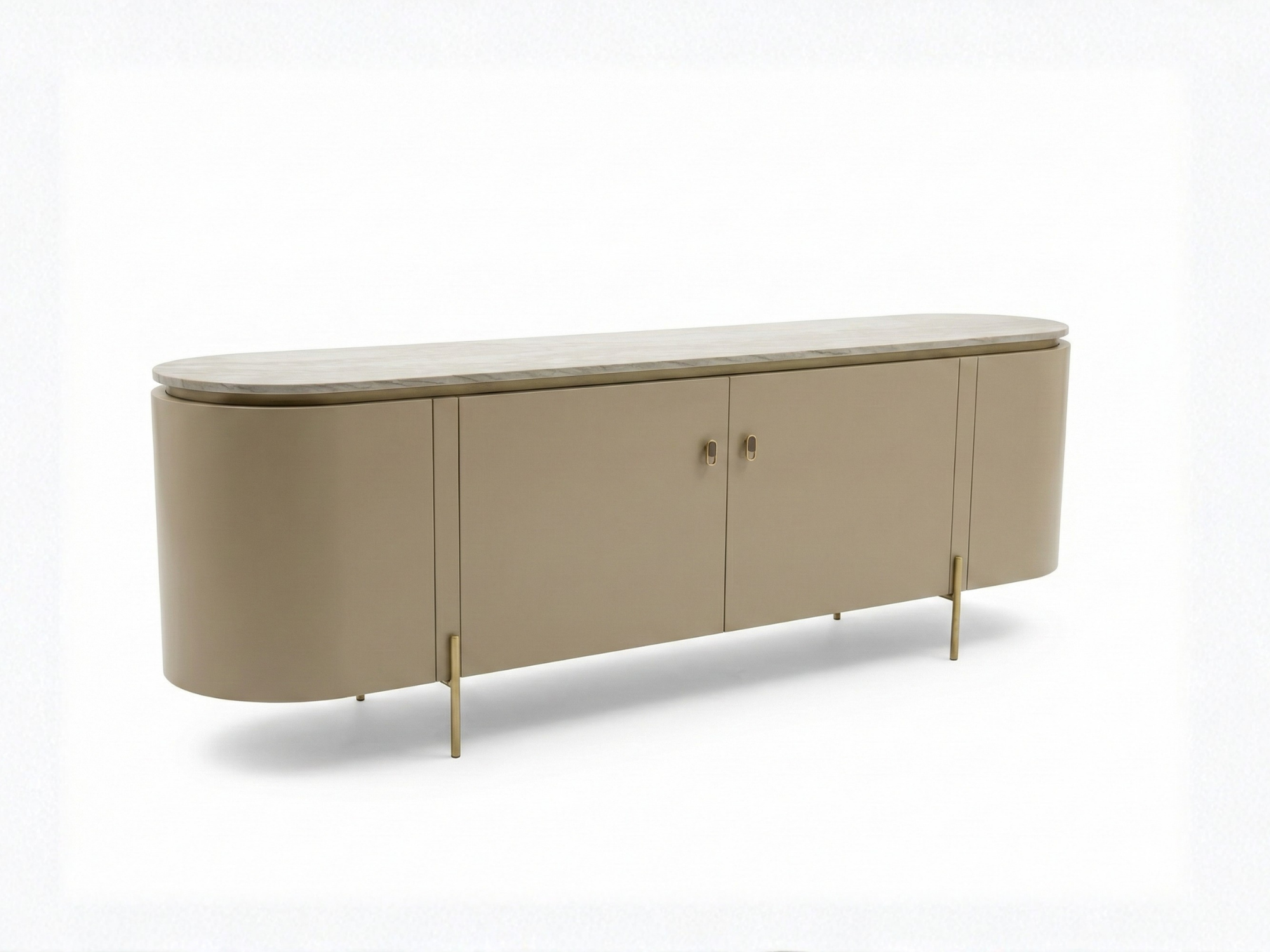 Cuerpo laca mate patas en acero electropintado y cubierta de mármol / granito.