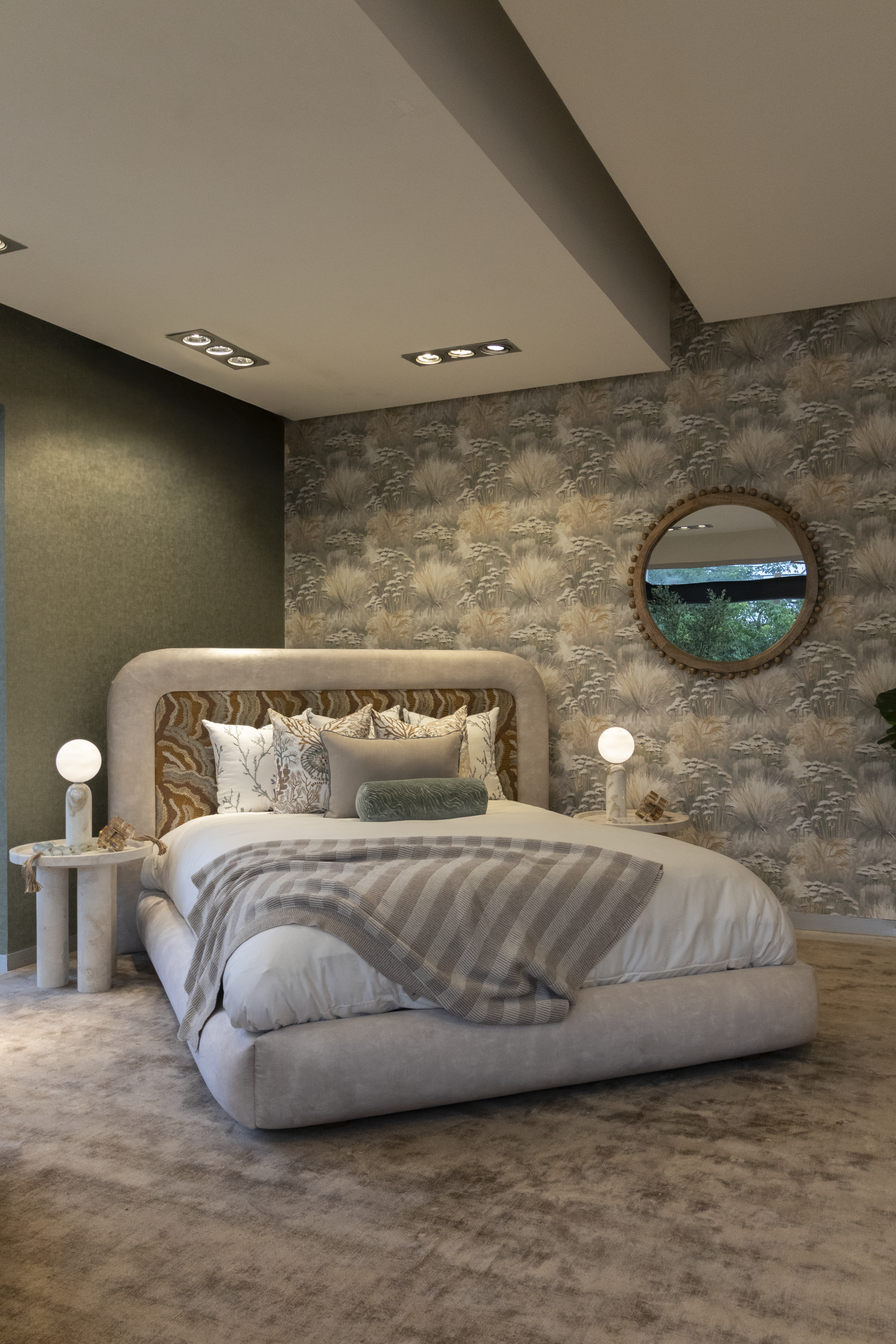 Cama Nil es la opción para combinar elegancia y confort. Esta cama aporta sofisticación a cualquier dormitorio, con la mayor suavidad por su tapicería completa que enmarca por el centro un textil diferente de su elección, destacando al contrastar con el textil principal. Nota: Las dimensiones pueden variar ±1 a 2 cm por procesos de fabricación y adaptación al diseño.