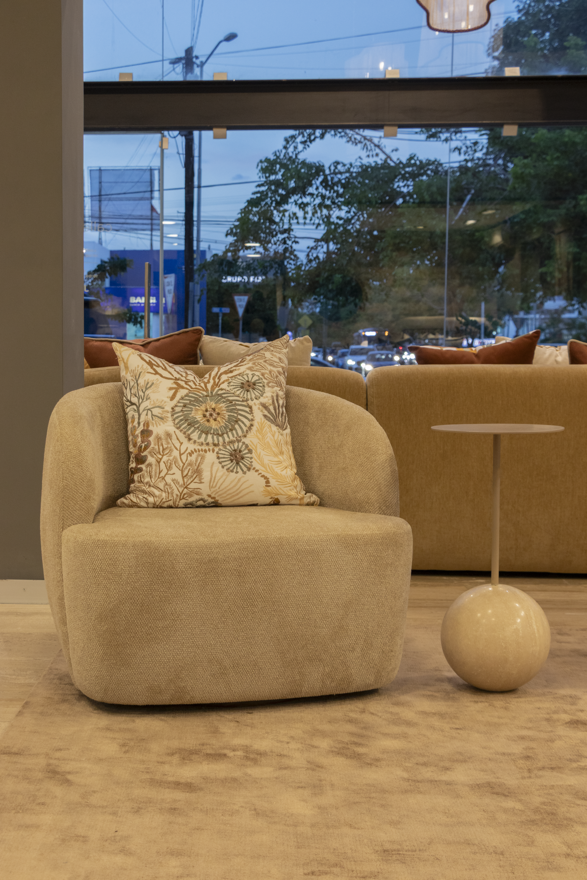 Mesa auxiliar Lucia es un acompañamiento versátil para cualquier espacio, creando un apoyo que no satura, si no, aporta elegancia en un diseño ligero, por su uso de mármol en formato esférico que permite que la cubierta se perciba elevada. Nota: Las dimensiones pueden variar ±1 a 2 cm por procesos de fabricación y adaptación al diseño.