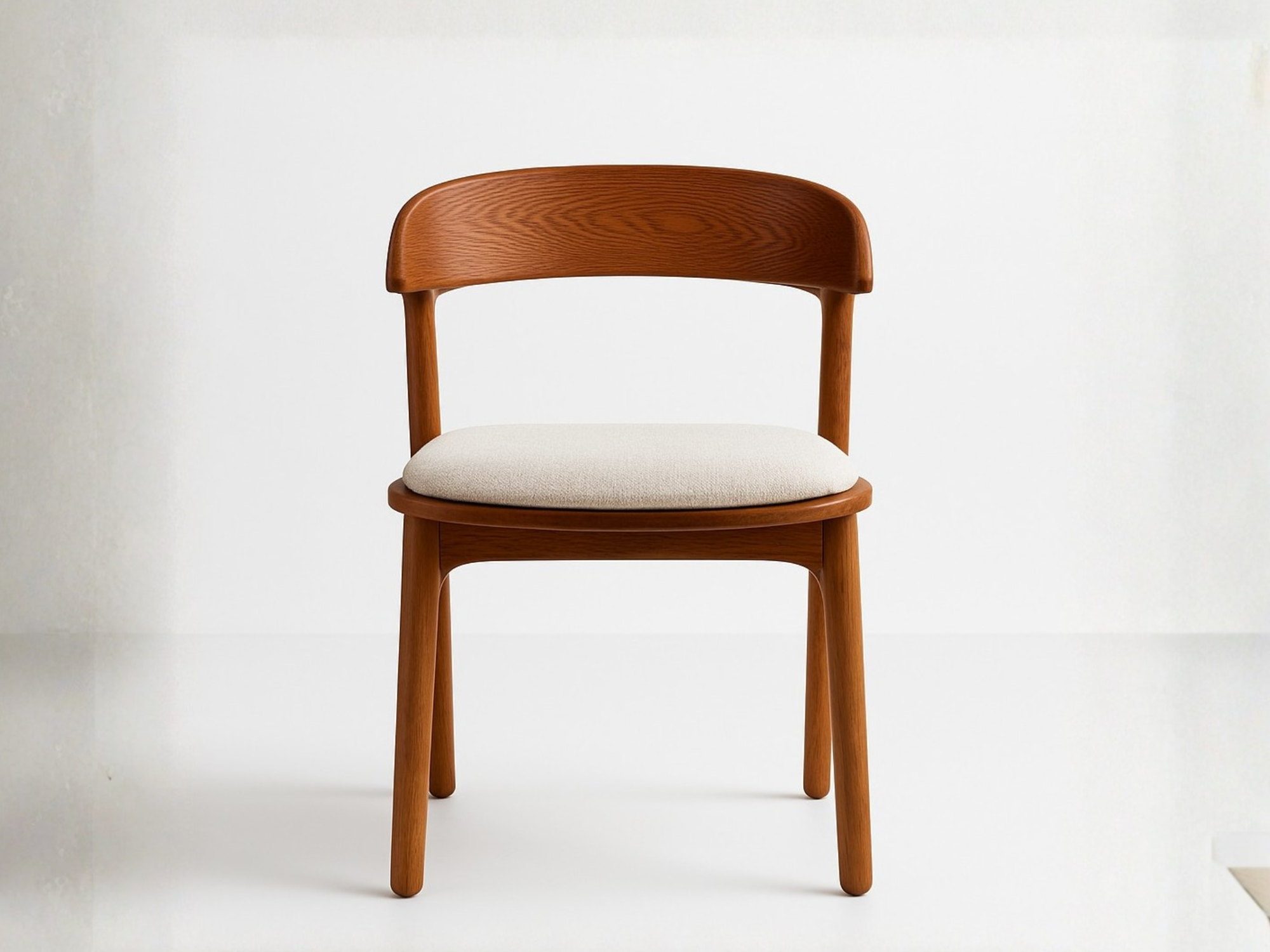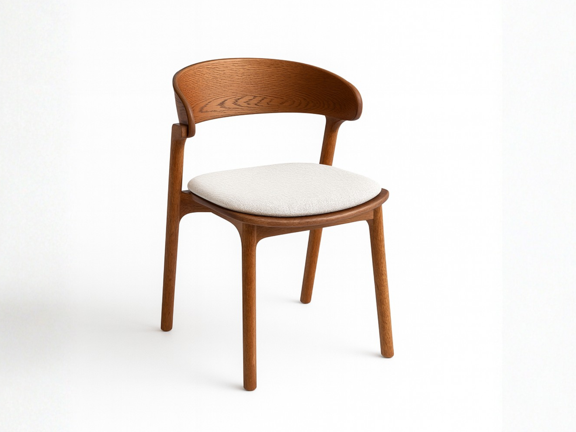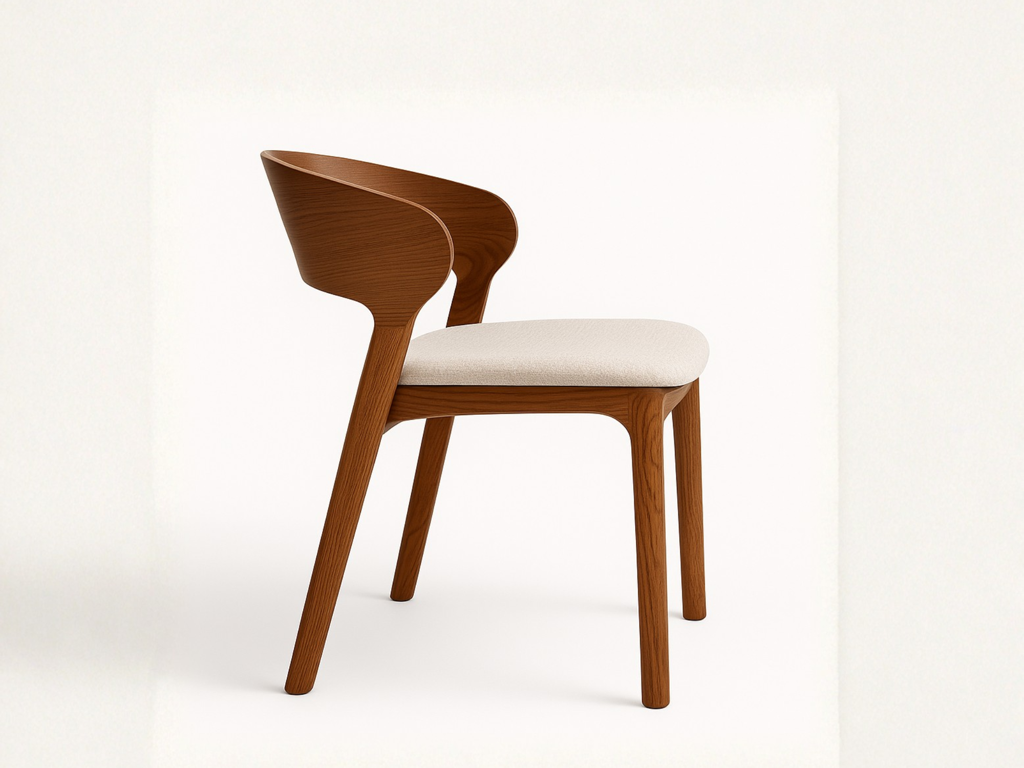Silla Amelia, realizada en madera maciza de fresno, destacando las vetas naturales de la madera. Un diseño con detalles que destacan por su situleza, cuidando la estética con confort. Nota: Las dimensiones pueden variar ±1 a 2 cm por procesos de fabricación y adaptación al diseño.