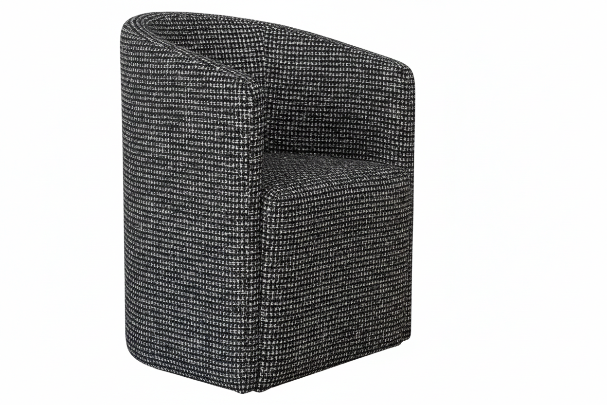 Estructura interna de madera maciza tapicería fija con telas de la marca artell. Base con ruedas.