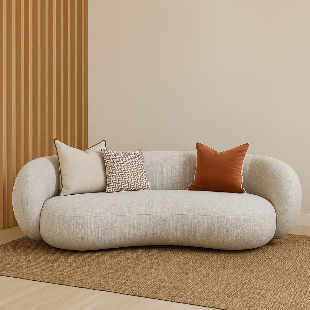 Sofá Santi es una pieza de mobiliario elegante y funcional que transforma la sensación de tu sala con su diseño curvo. Tapizado completamente ofrece una textura suave que exhibe su tela por delante y atrás. Al ser de dimensiones pequeñas es perfecto para un espacio que busca comodidad en menor medida. Nota: Las dimensiones pueden variar ±1 a 2 cm por procesos de fabricación y adaptación al diseño.