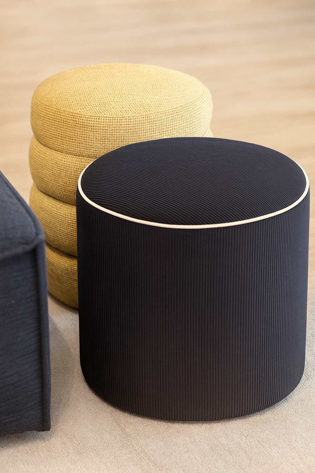 Taburete Pablo es una pieza que juega con la textura visual y su material textil. Creando profundidad en una pieza que sirve distintas funcionalidades y se adapta al espacio creando dinamismo e interés. Nota: Las dimensiones pueden variar ±1 a 2 cm por procesos de fabricación y adaptación al diseño.